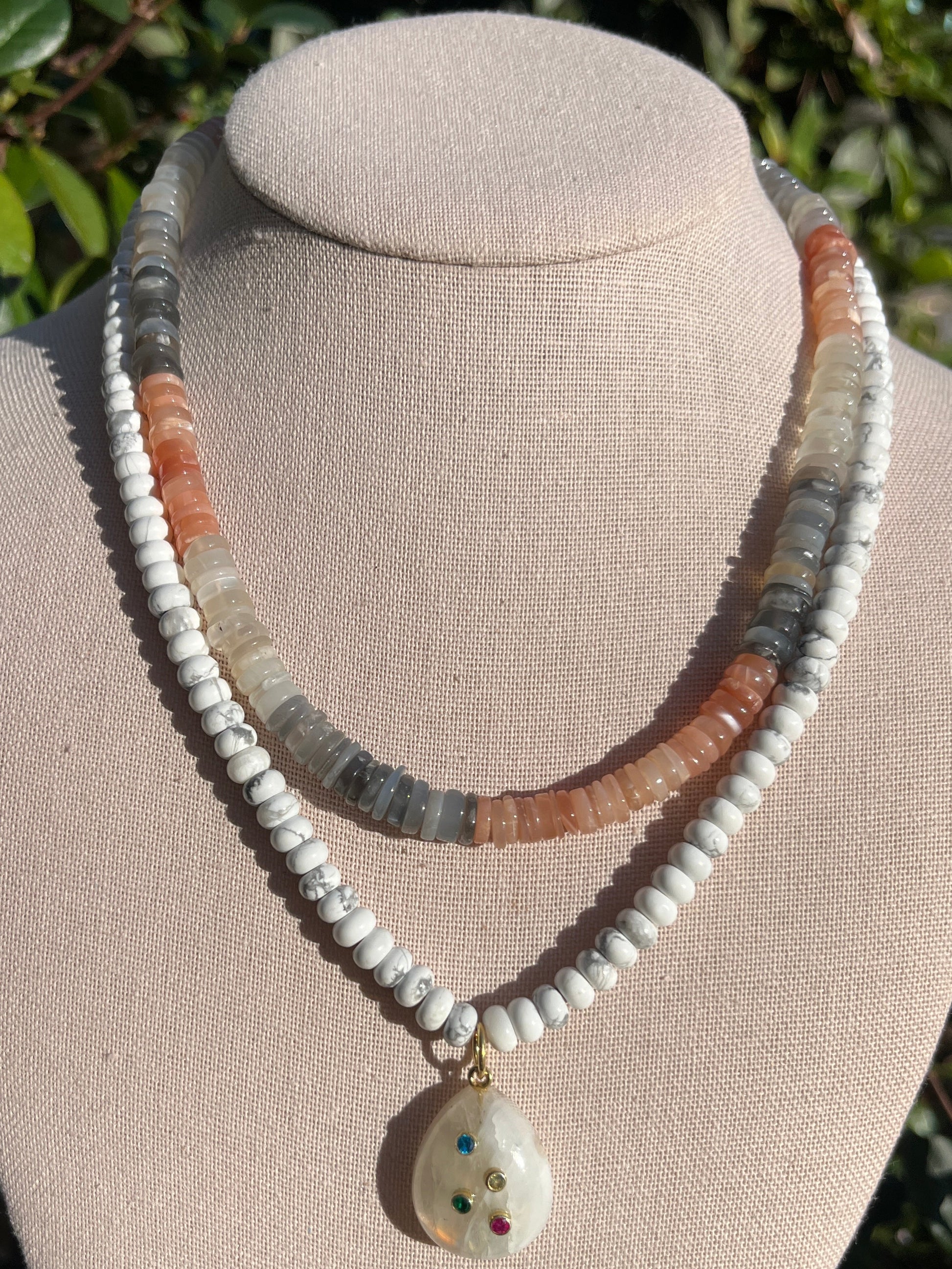 Stacker Set: Moonstone Stacker + Howlite Necklace with Moonstone Pendant